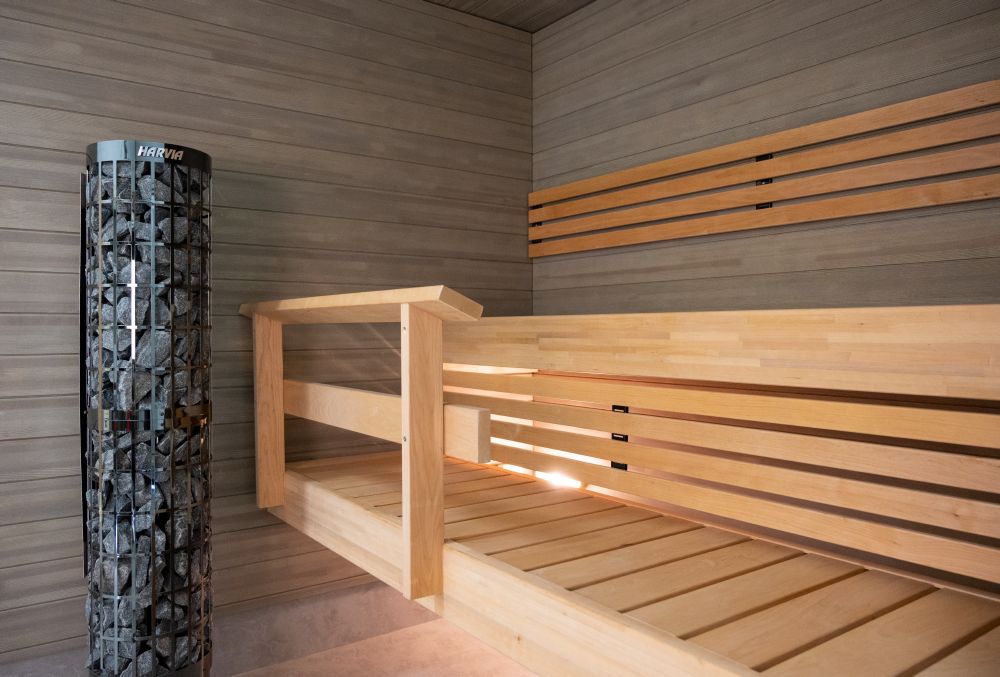 - スタイリッシュなブラックスチールの色がサウナにモダンなタッチを加えます